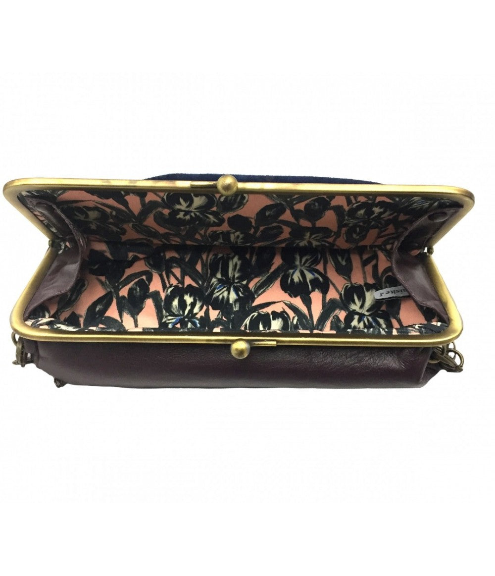 borsa a tracolla EXQUISITE in pelle e suede bordeaux e bluette