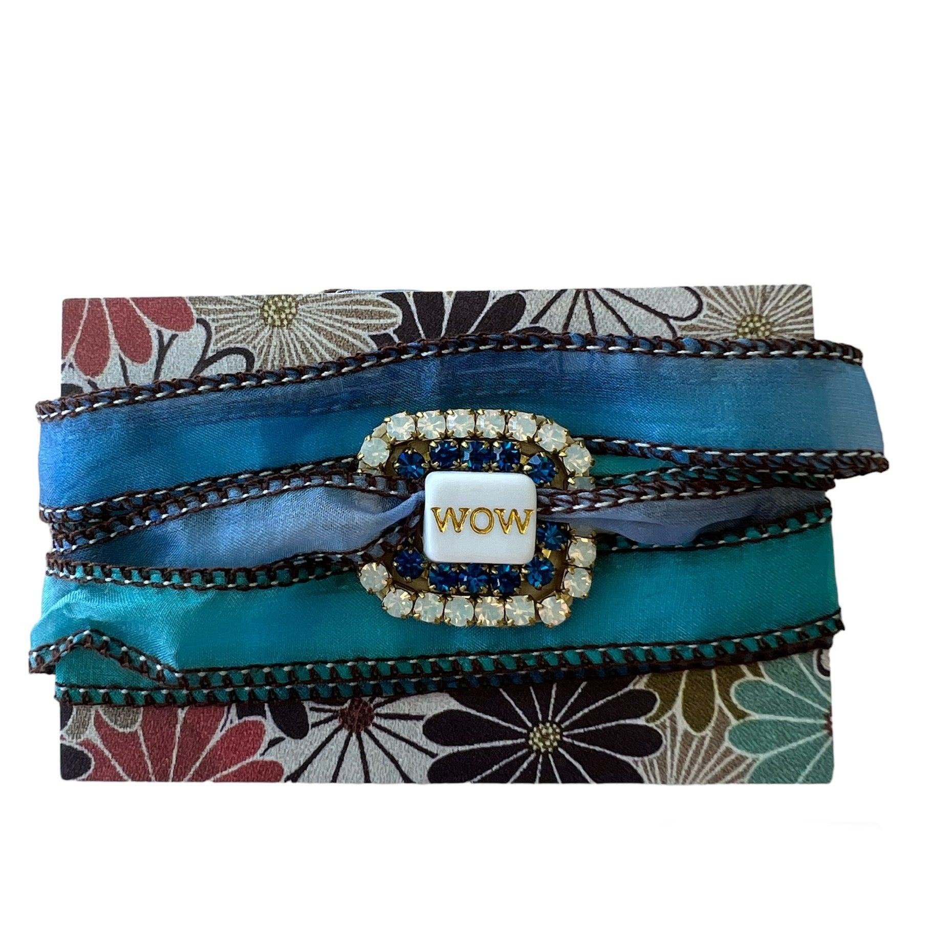Bracciale a nastro TEZEE “wow” in seta sfumata nei toni turchese e bluette