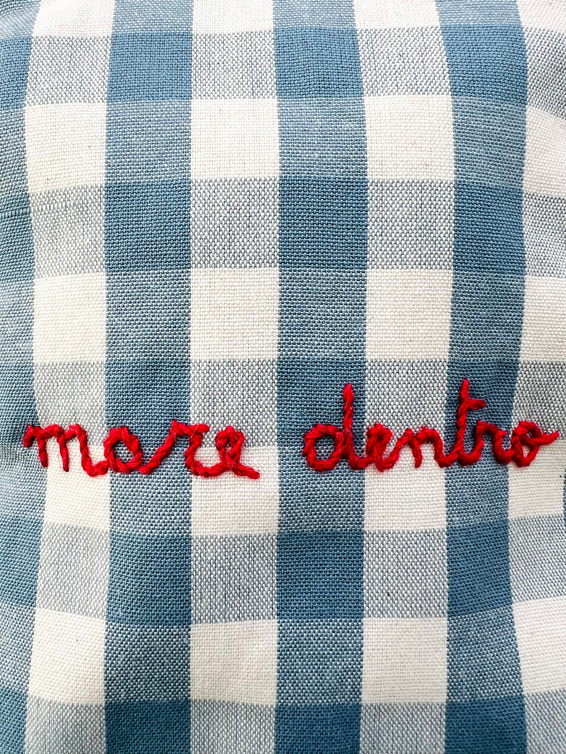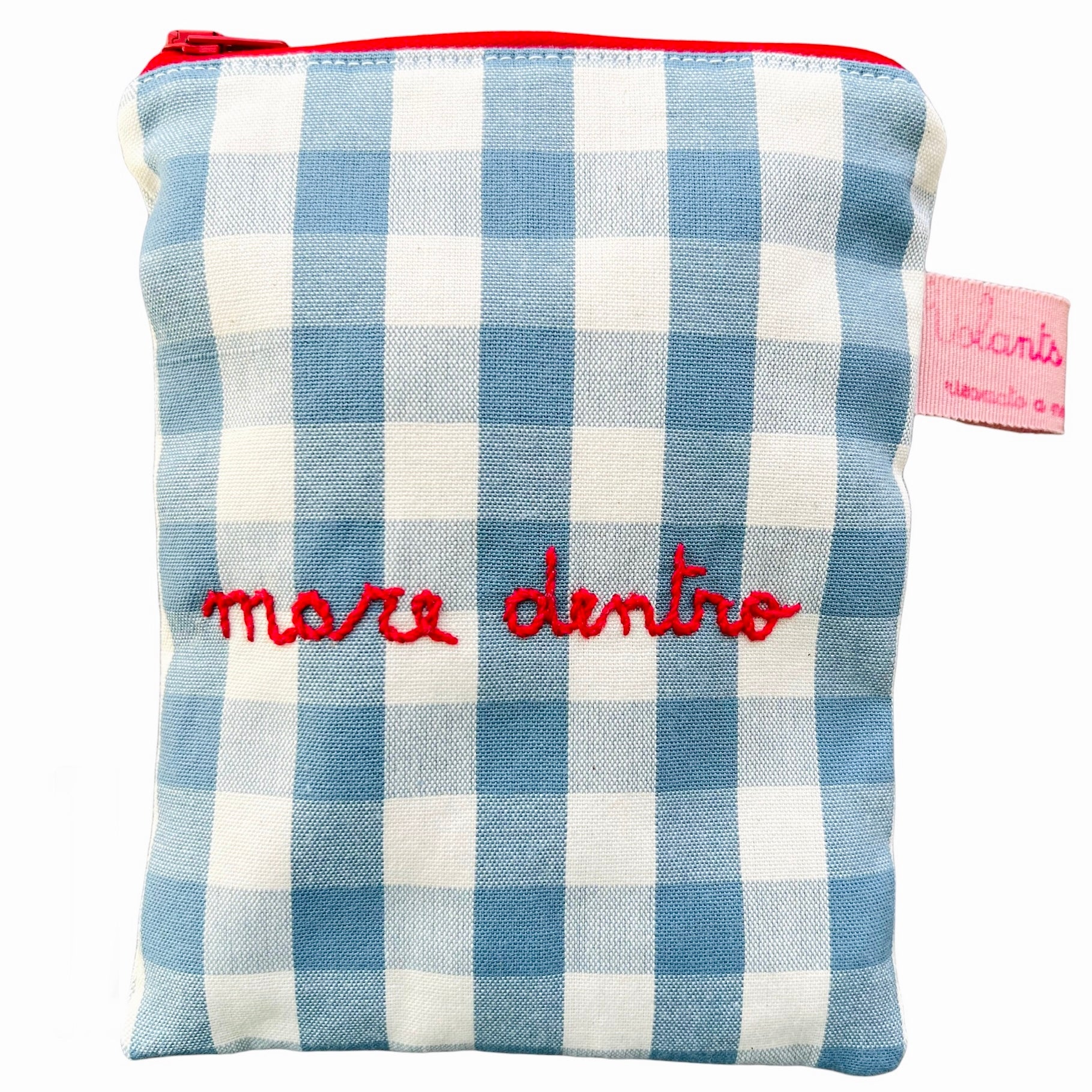 bustina VOLANTS VOLANT a quadretti vichy azzurri "mare dentro" ricamata a mano