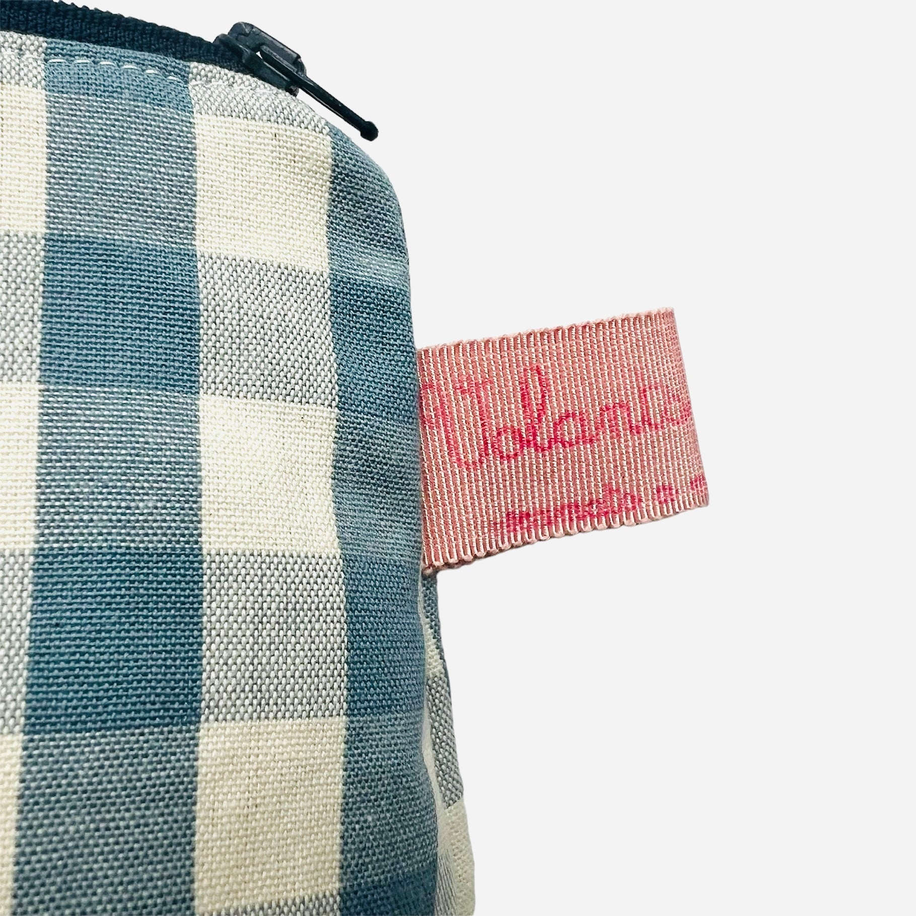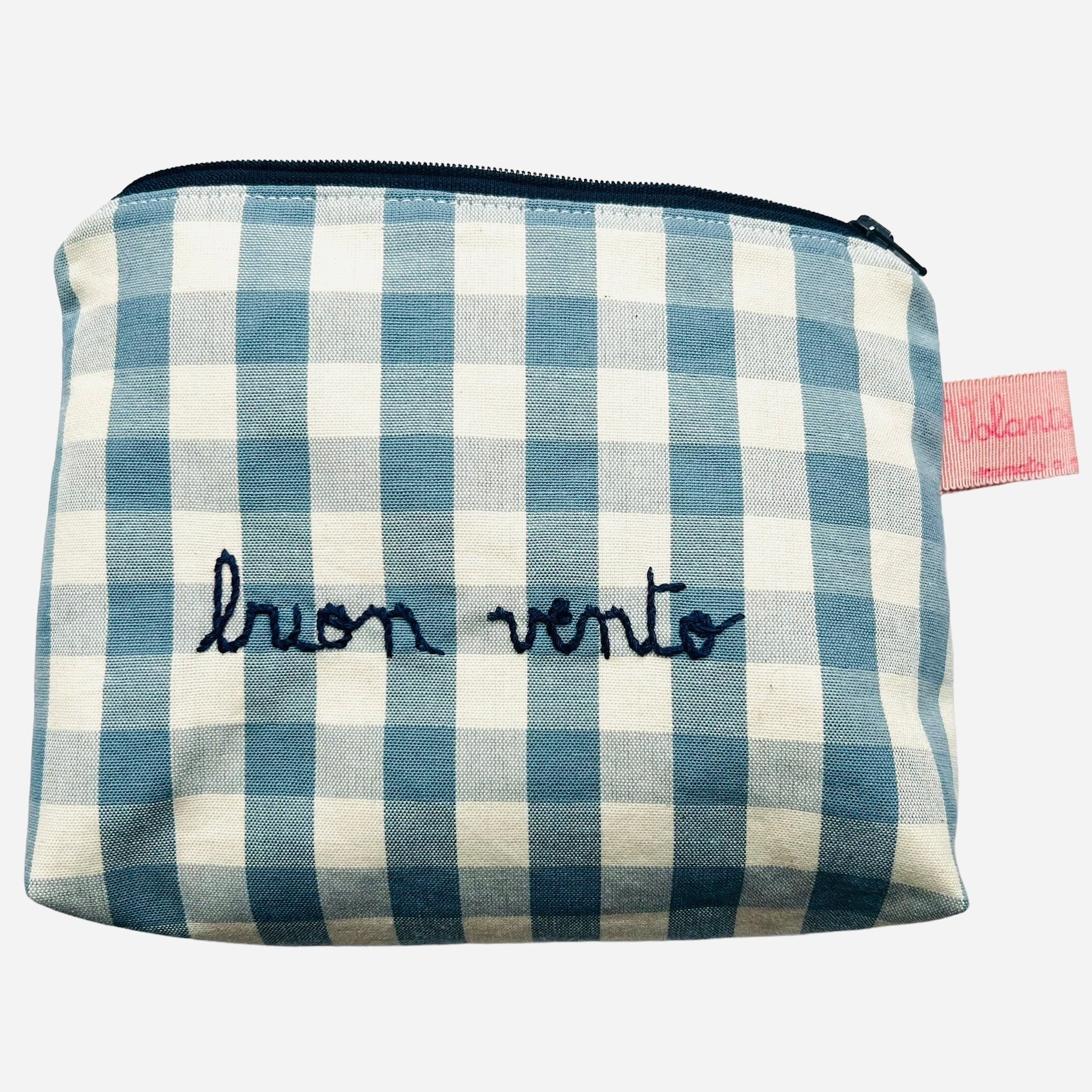 bustina VOLANTS VOLANT a quadri azzurri ricamata a mano "buon vento"