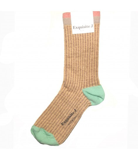 calzini EXQUISITE J rosa chiaro con righe in lurex e bordo con righina