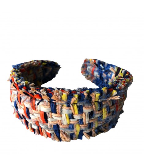 cerchietto MARIA LA ROSA tessuto a mano in rafia e lana multicolore