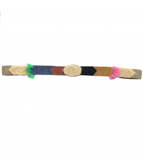 cintura EXQUISITE J in elastico con inserti in suede e pelliccia ecologica colore bianco panna, rosa e verde