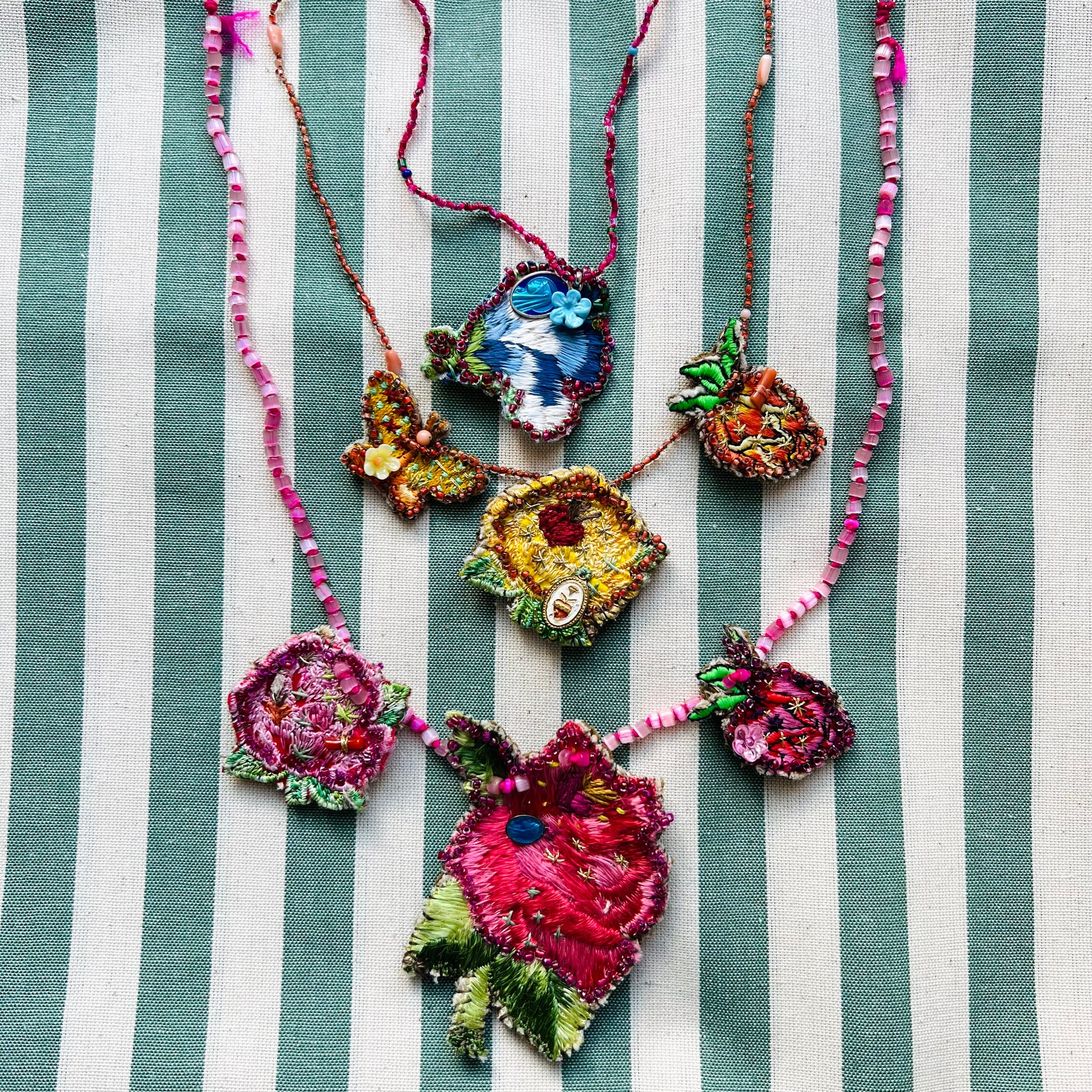 pack con sacchetto ricamato a mano abbinato ai colori della collana