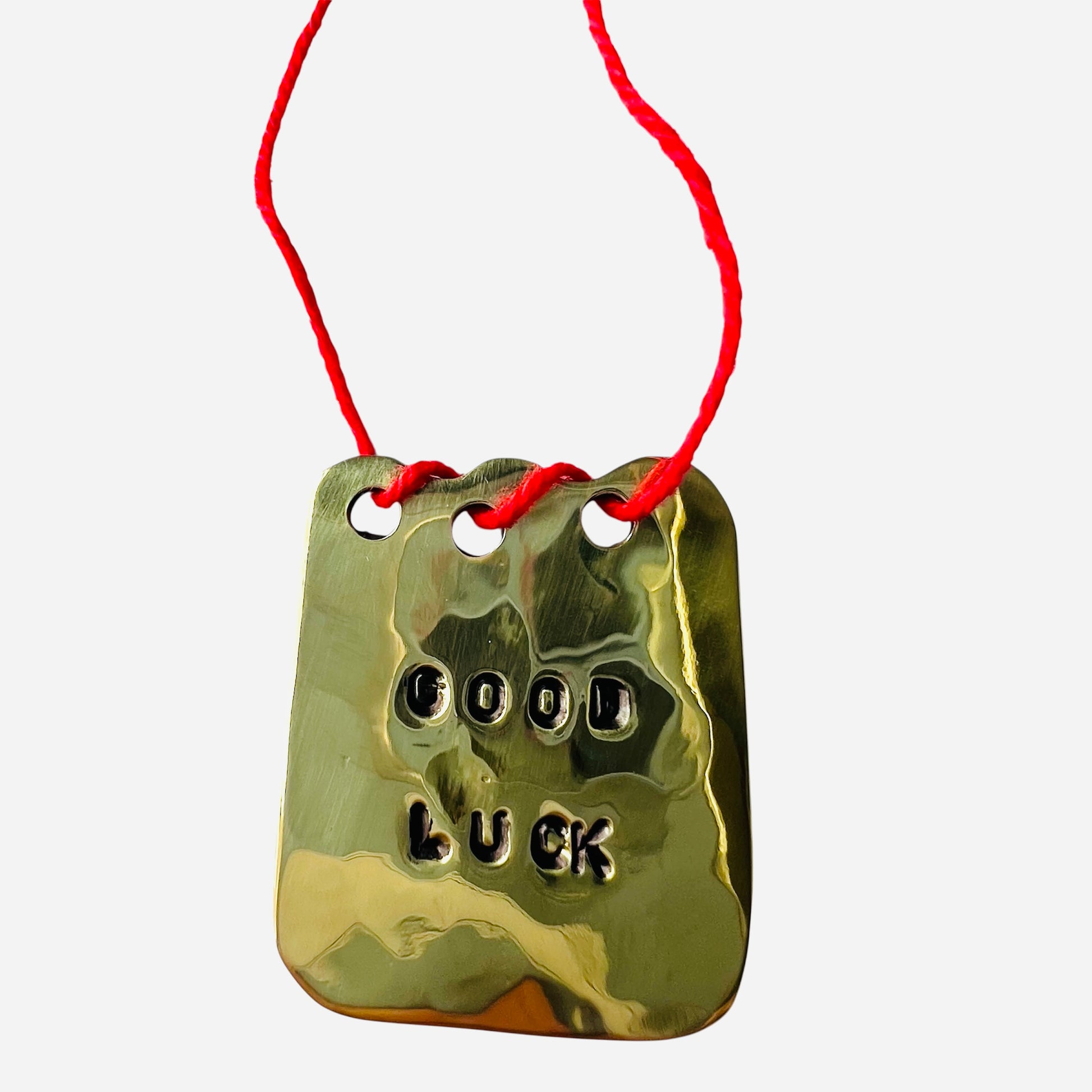 collana VIOLA'S CHARME con piastrina in ottone "good luck" forgiata ed incisa a mano