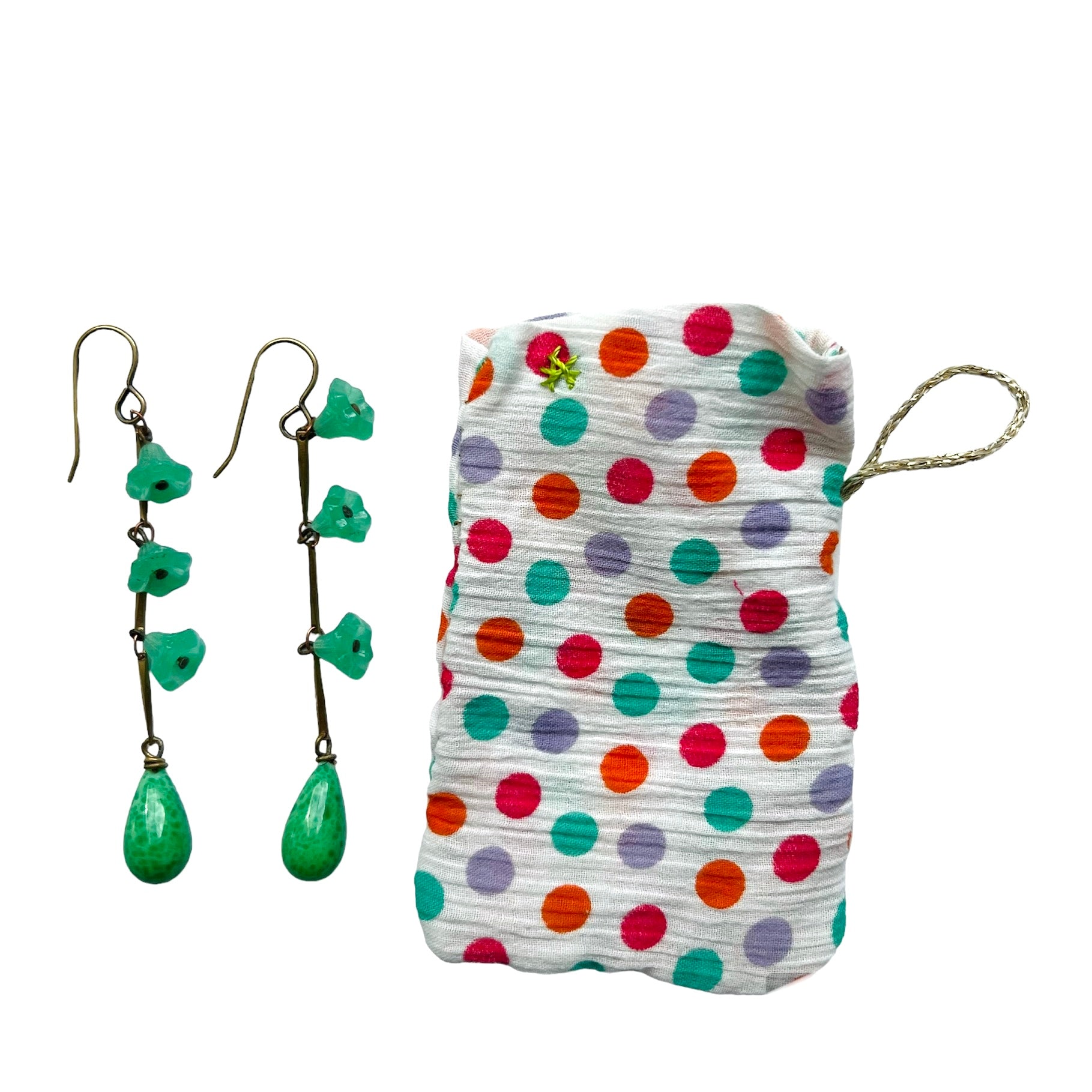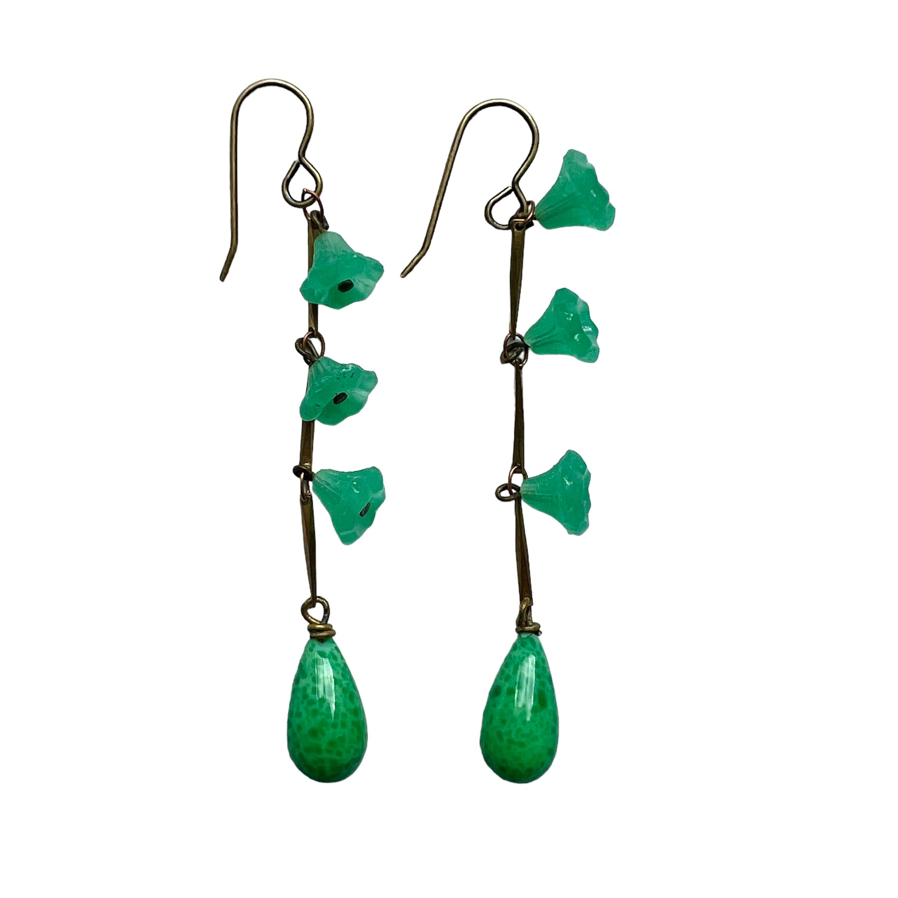 orecchini FATA & BIBI pendenti con ciondoli-campanule verdi e goccia finale