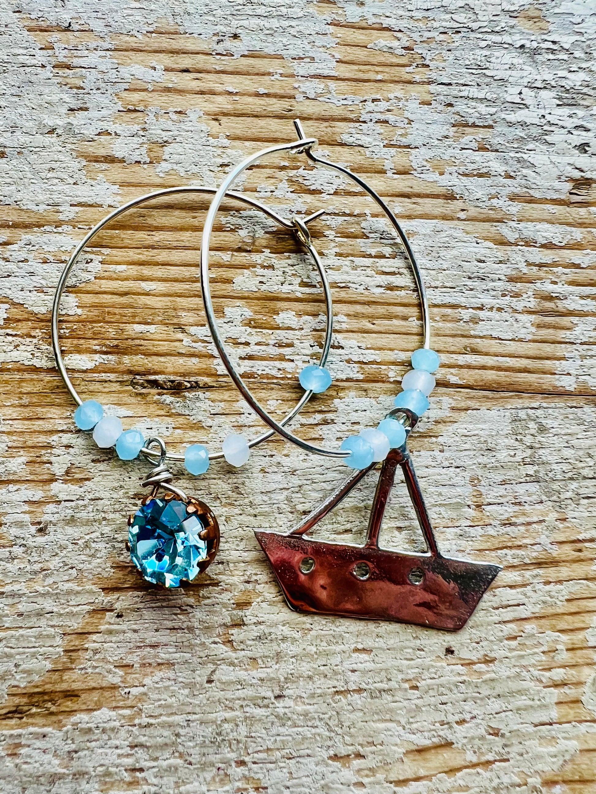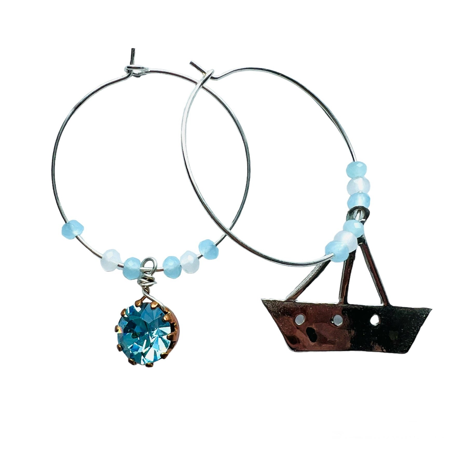 orecchini MAIDA MONILI a cerchio con barchetta in argento, strass ciondolo e cristalli