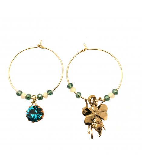 orecchini MAIDA MONILI con ciondolo ape e cristalli e cristallo verde mare