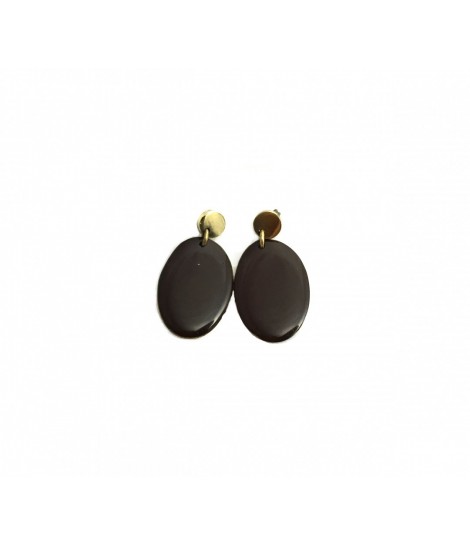 orecchini ovali MAJO bronzo lucido e smalto marrone
