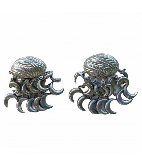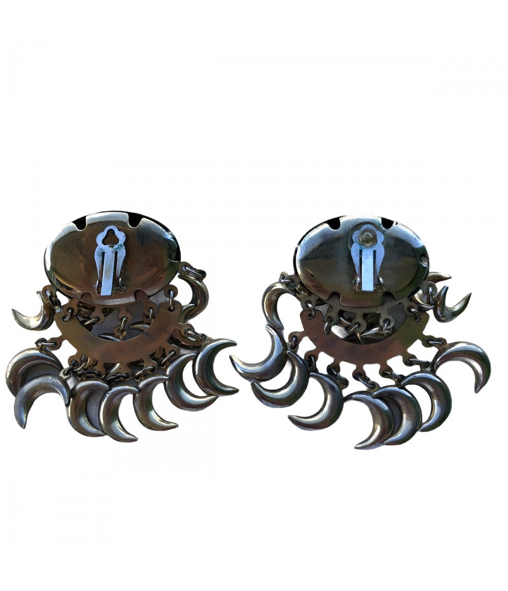 orecchini vintage a clip con ciondoli luna e elemento ovale