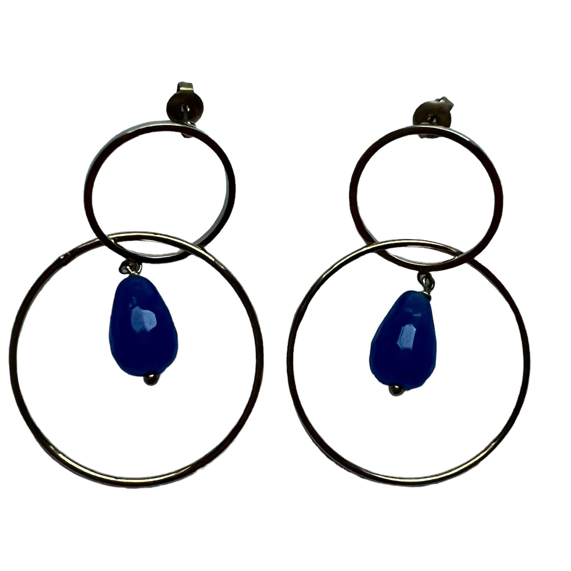 orecchini VIOLA PISENTI doppio cerchio e pietre a goccia blu