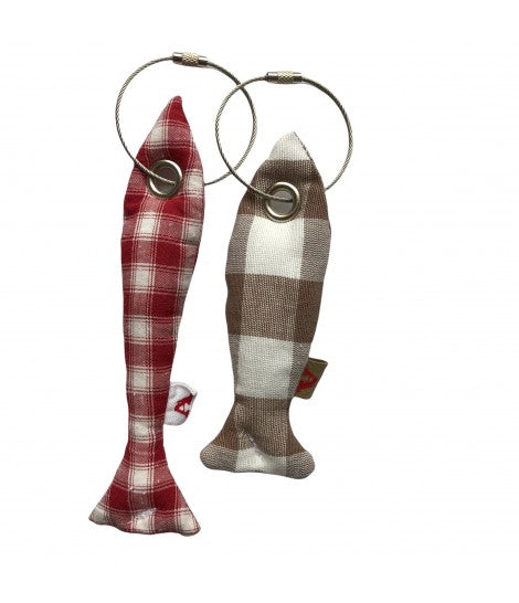 set di due portachiavi ATELIER CARTA BIANCA pesci quadrettini rossi e quadri vichy tortora